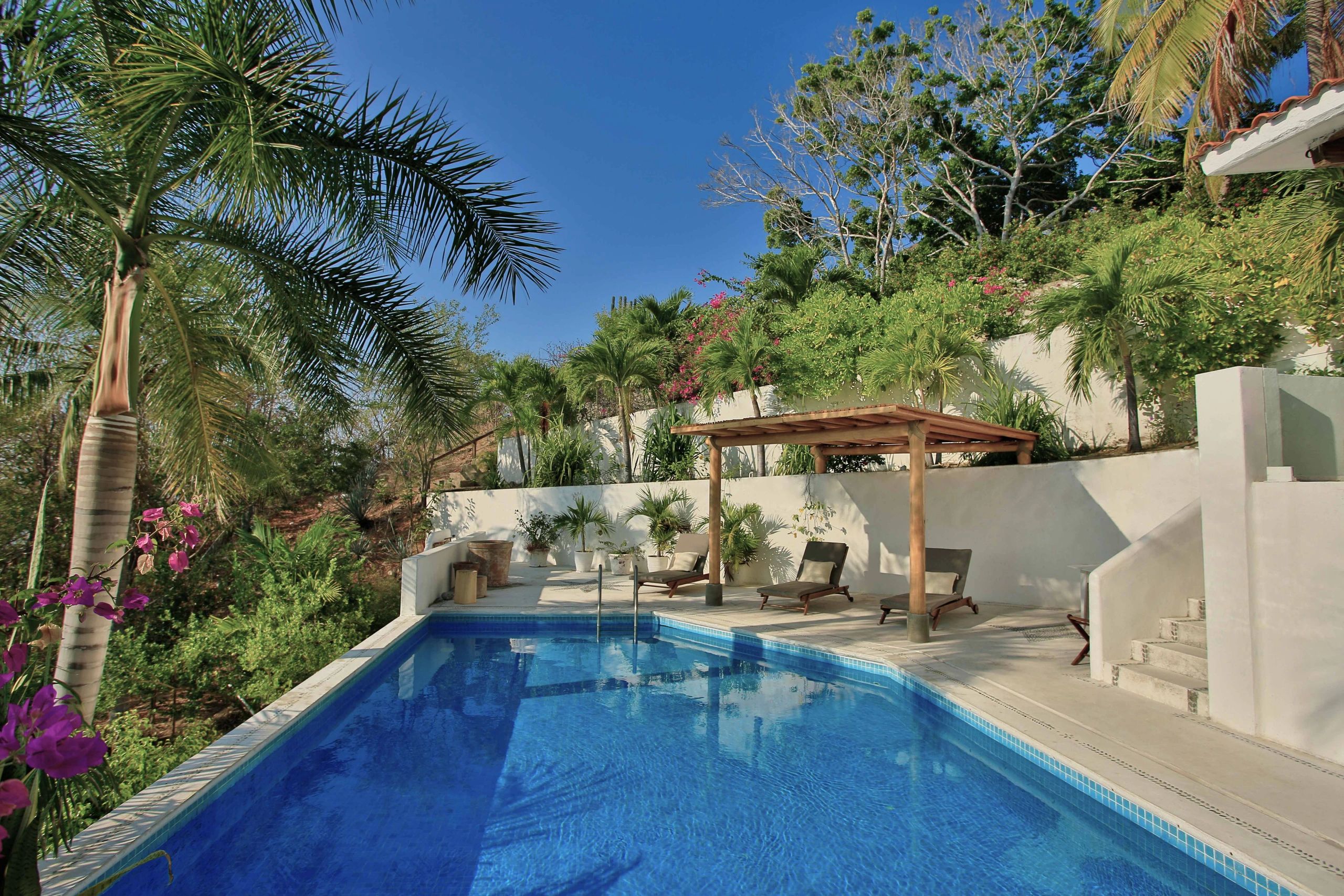 Lodging in our private villa, with a pool and private beach
